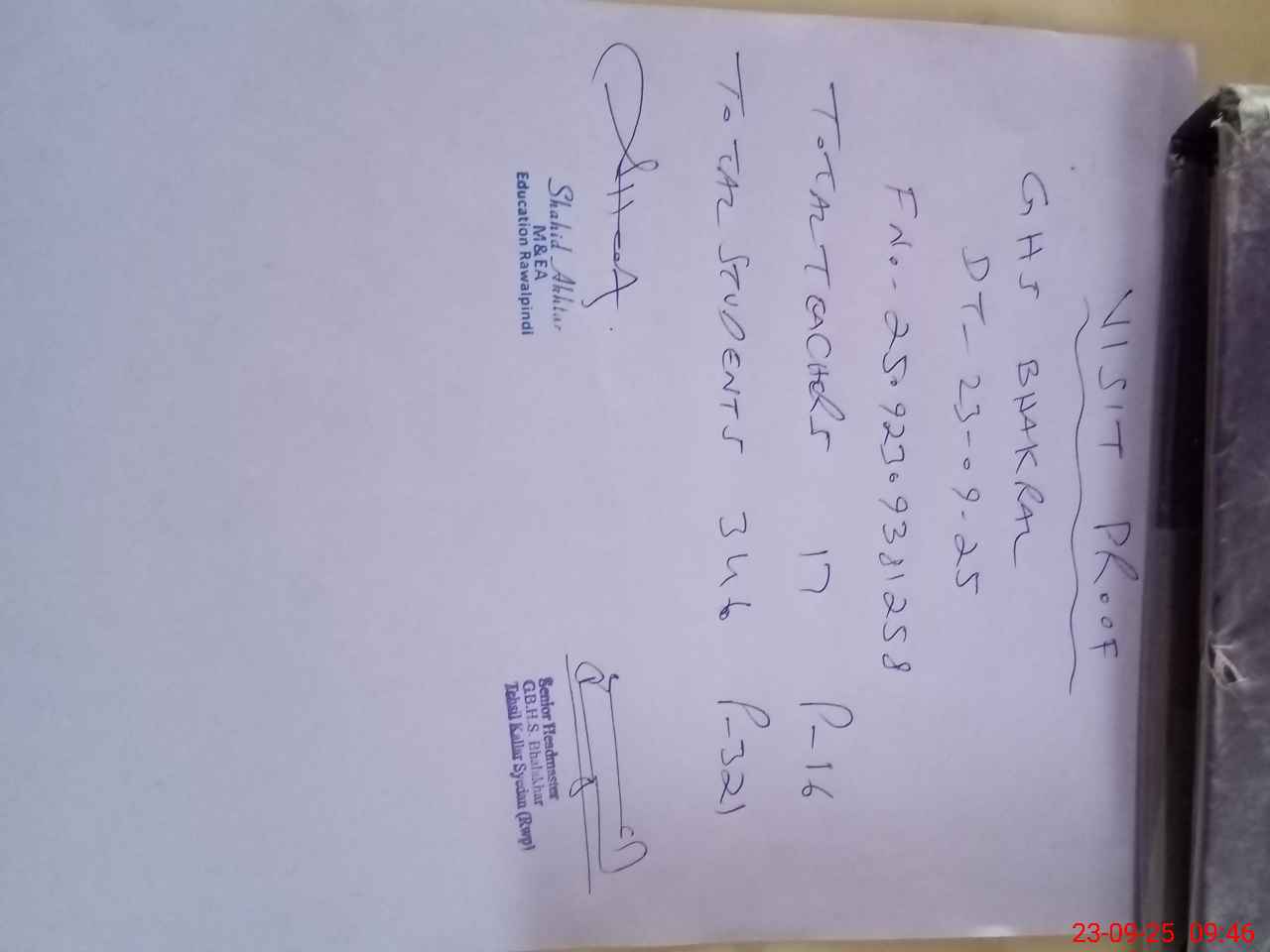 | Name: Ay**** Ma**** Am**** Designation: (School Headmaster's/Headmistress's) SST I/C HM Phone/Cell Number: 03**** |