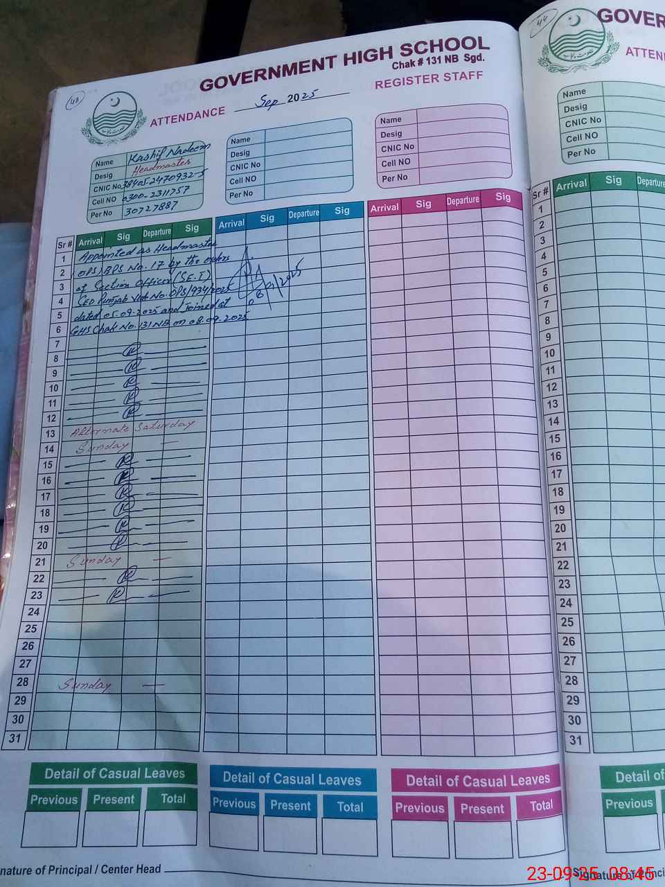 | CNIC | Full Name | Designation | R/C | Absence During Last Calender Month |