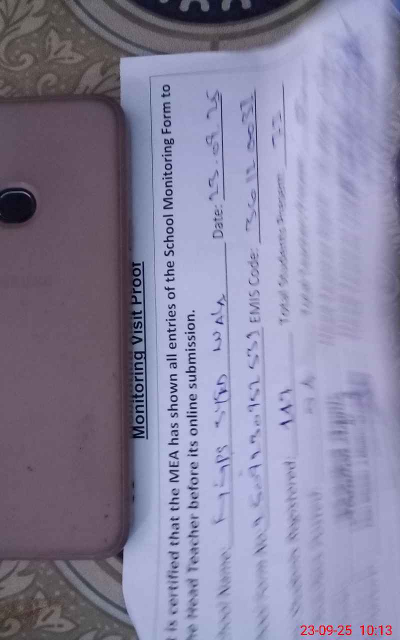 | Attendance Register | Head Teacher | MEA with School | Visit Proof |