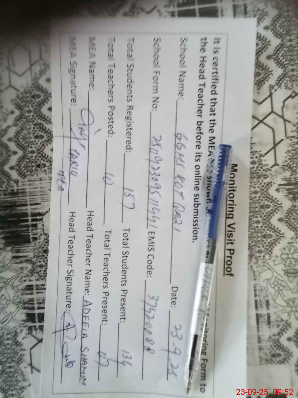 | EMIS Code: 37420088 | Name of School: GGHS KOT QAZI | |||