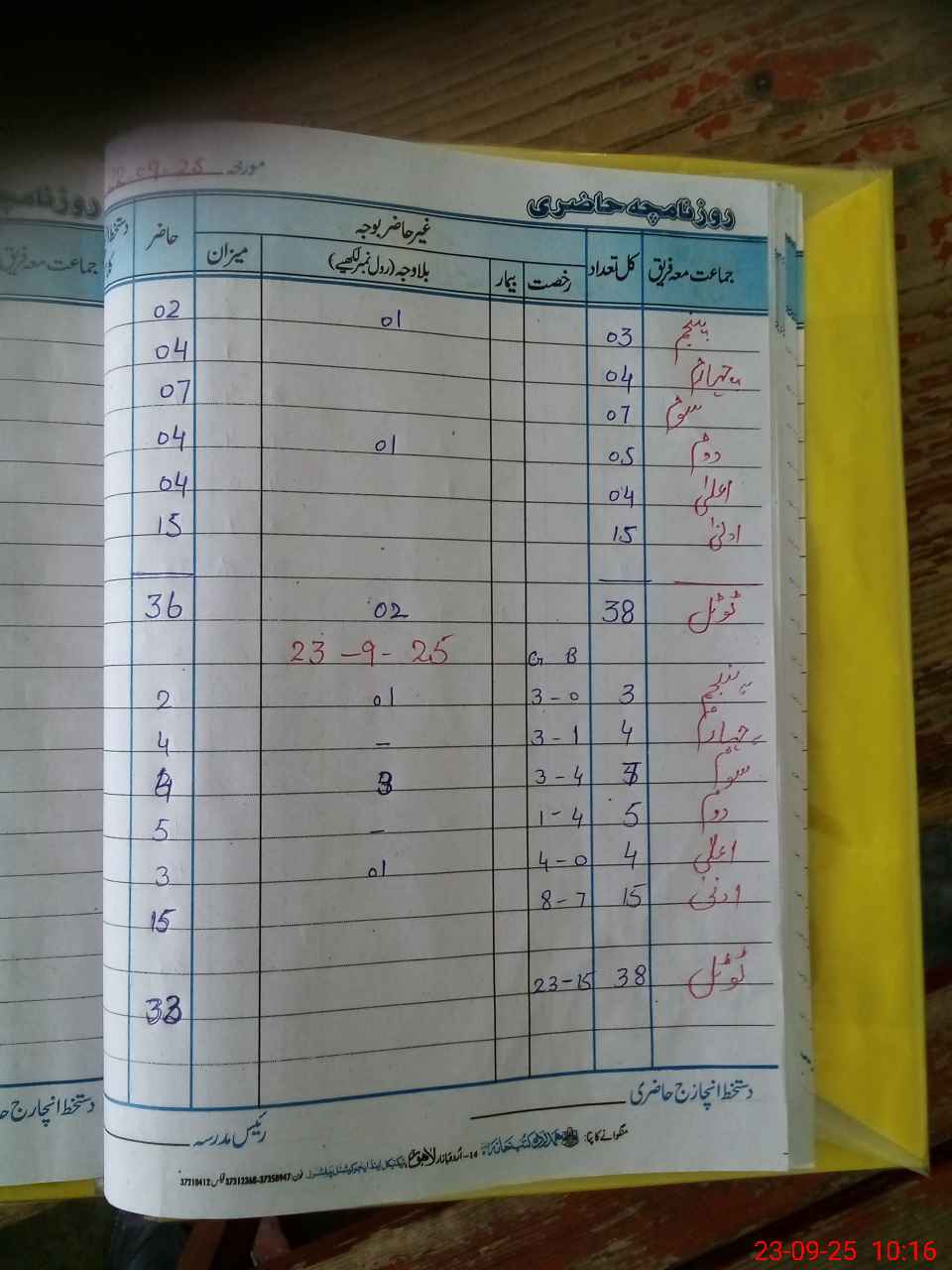 | Total Students Present | 0 | 0 | 15 | 3 | 5 | 4 | 4 | 2 | 33 | |||||||