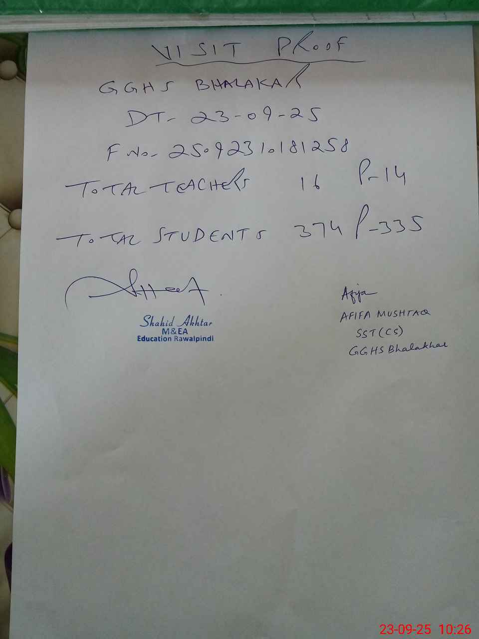 | EMIS Code: 37310080 | Name of School: GGHS BHALA KHAR | |||