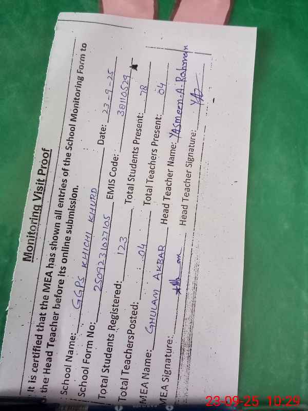 | EMIS Code: 38110529 | Name of School: GGPS KHICHI KHURD | |||