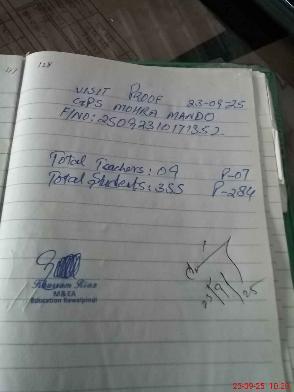 | EMIS Code: 37360644 | Name of School: GPS MOHRA MANDO | |||