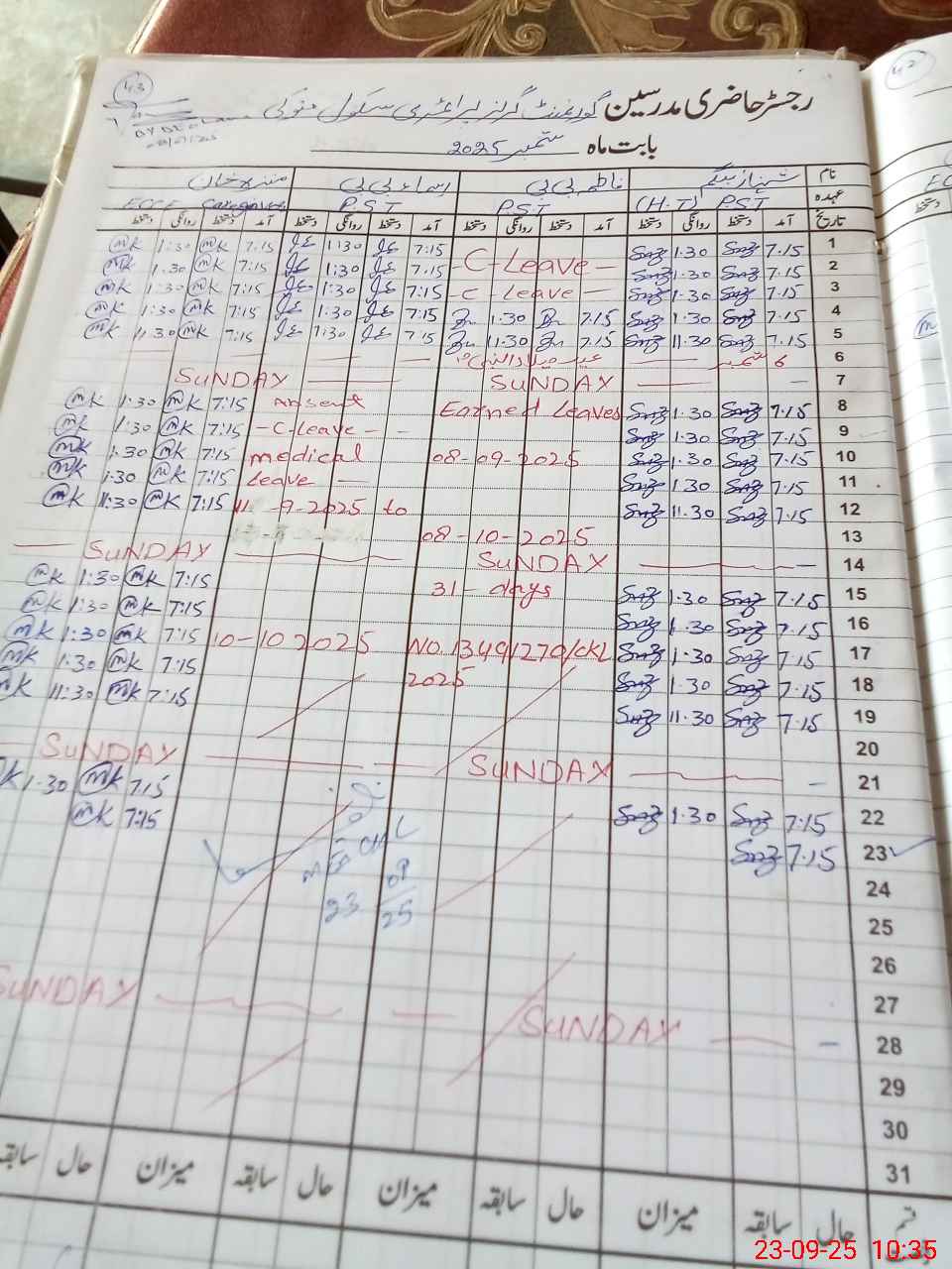 | Leave | Duty | Absent | Maternity | Medical | Ex- Pak |