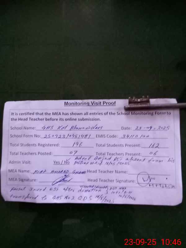 | EMIS Code: 34110100 | Name of School: GHS KOT BHAWANIDASS | |||