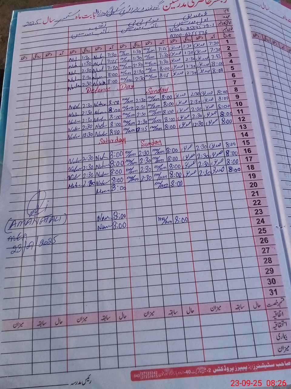 | Name: Sa**** Al**** Designation: (School Headmaster's/Headmistress's) PST Phone/Cell Number: 03**** |