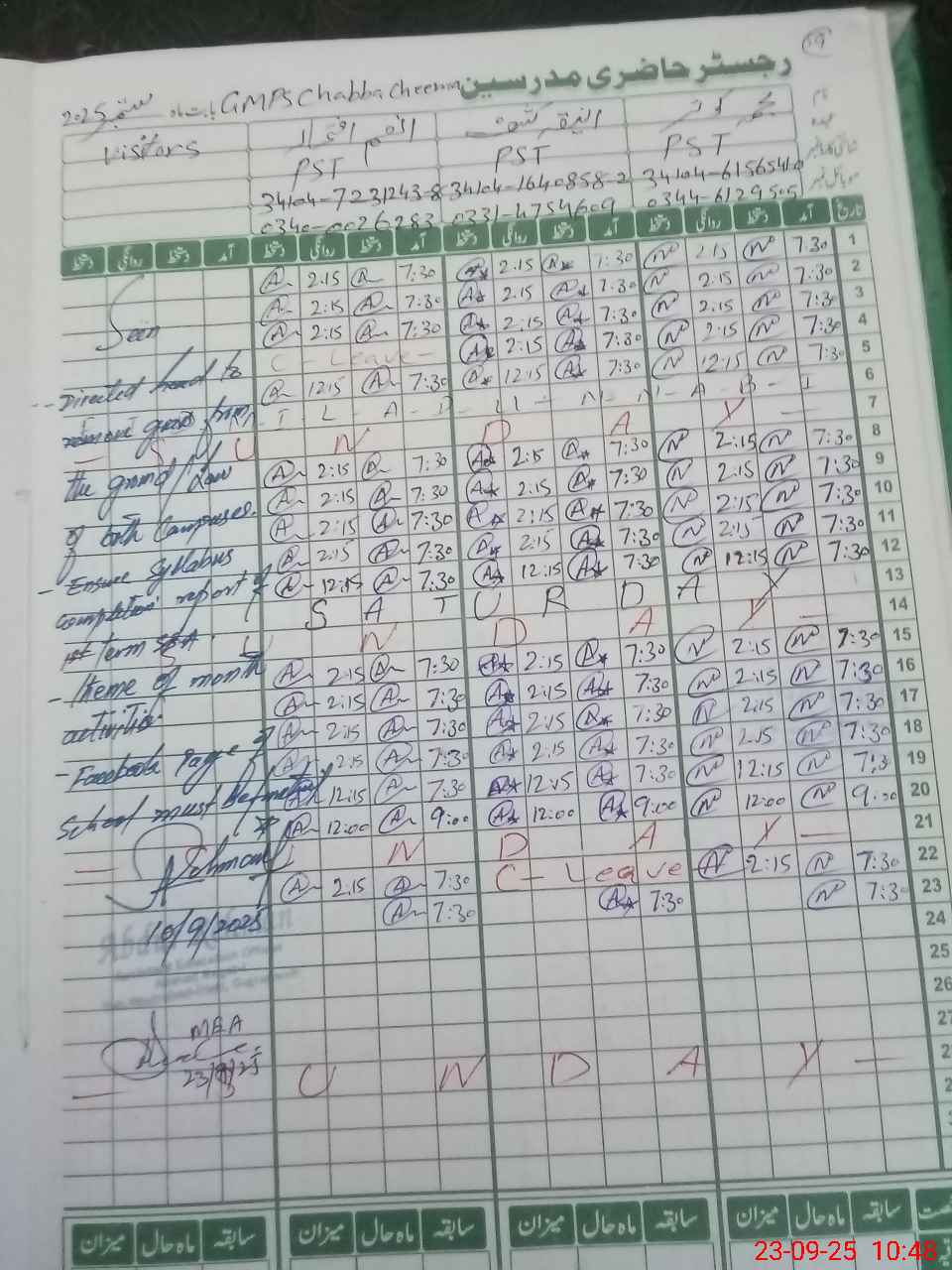 | Name: Na**** Ka**** Designation: (School Headmaster's/Headmistress's) PST Phone/Cell Number: 03**** |