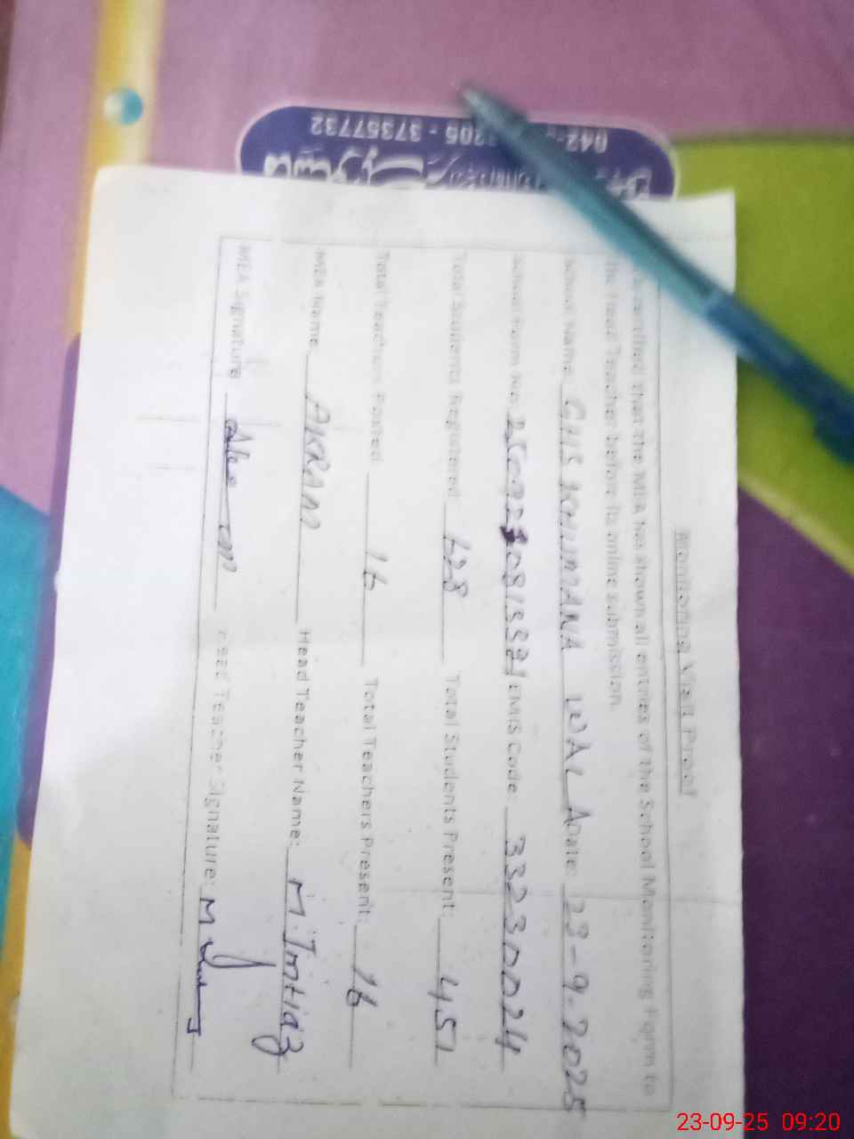 | EMIS Code: 33230024 | Name of School: GHS KHUMANA WALA | |||
