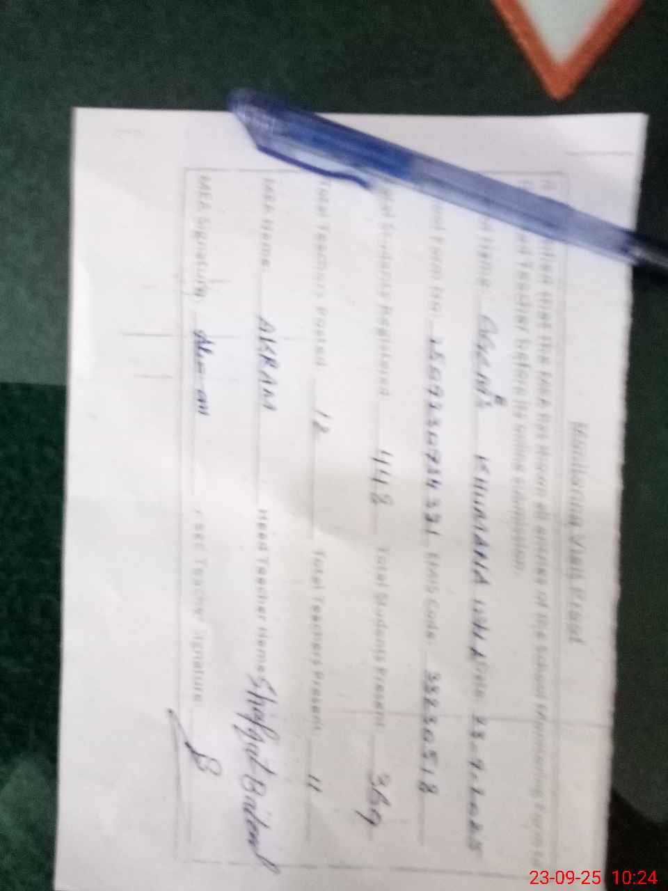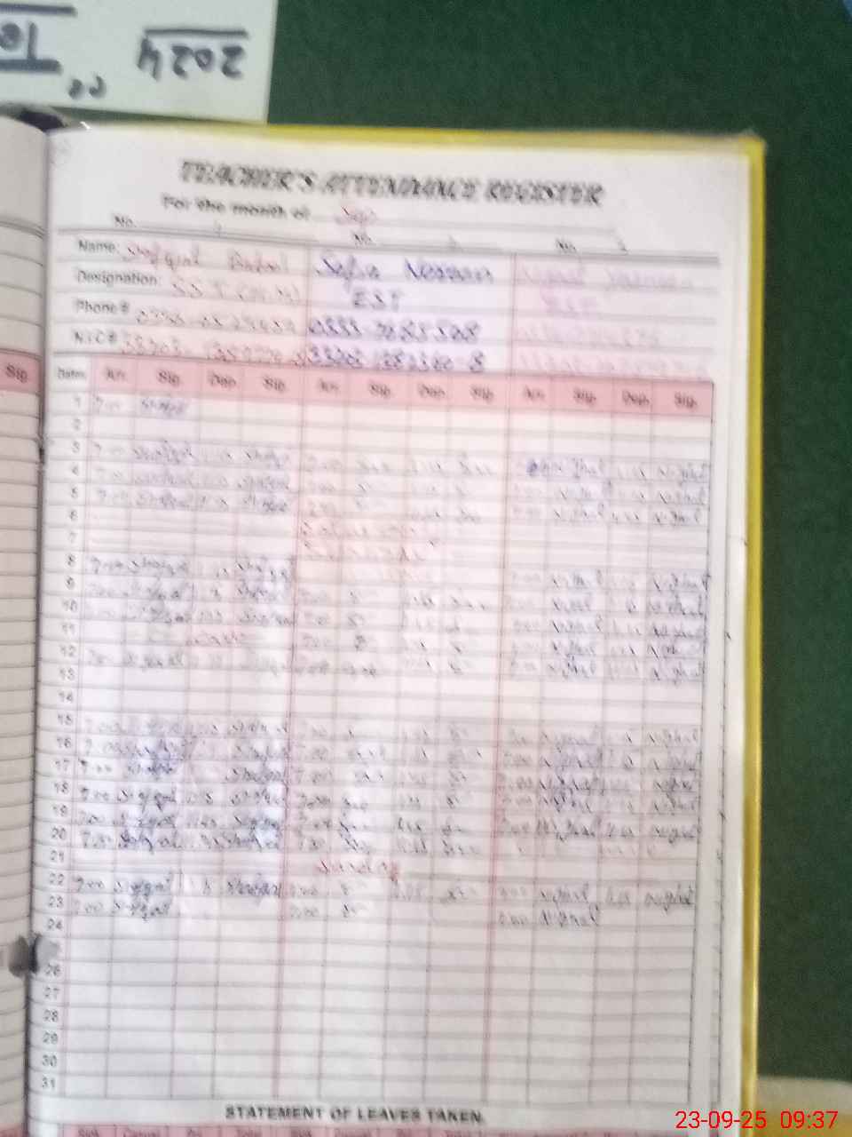 | Name: SH**** BA**** Designation: (School Headmaster's/Headmistress's) SST Phone/Cell Number: 03**** |