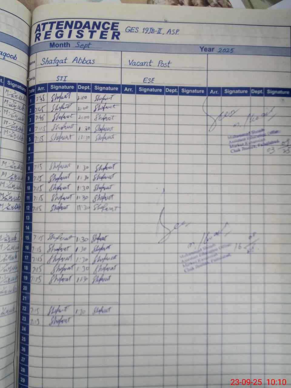 | Monitoring Date: 23-09-2025 | Start Time: 23-09-2025 09:30 AM | End Time: 23-09-2025 10:12 AM | Name of MEA: MU**** SH**** MU**** | |