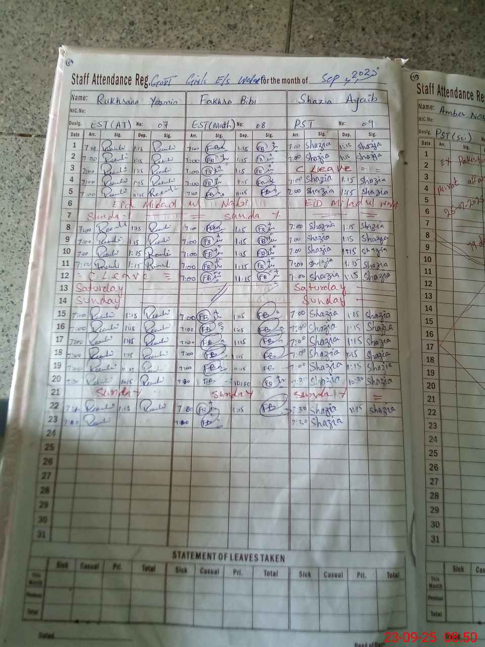 | Name: RU**** YA**** Designation: (School Headmaster's/Headmistress's) S.S.T.(GEN) Phone/Cell Number: 03**** |