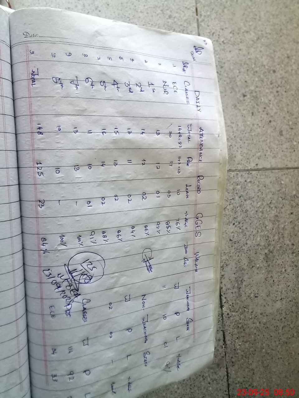 | Total Students Present | 13 | 0 | 17 | 12 | 12 | 11 | 13 | 14 | 10 | 13 | 10 | 125 | ||||