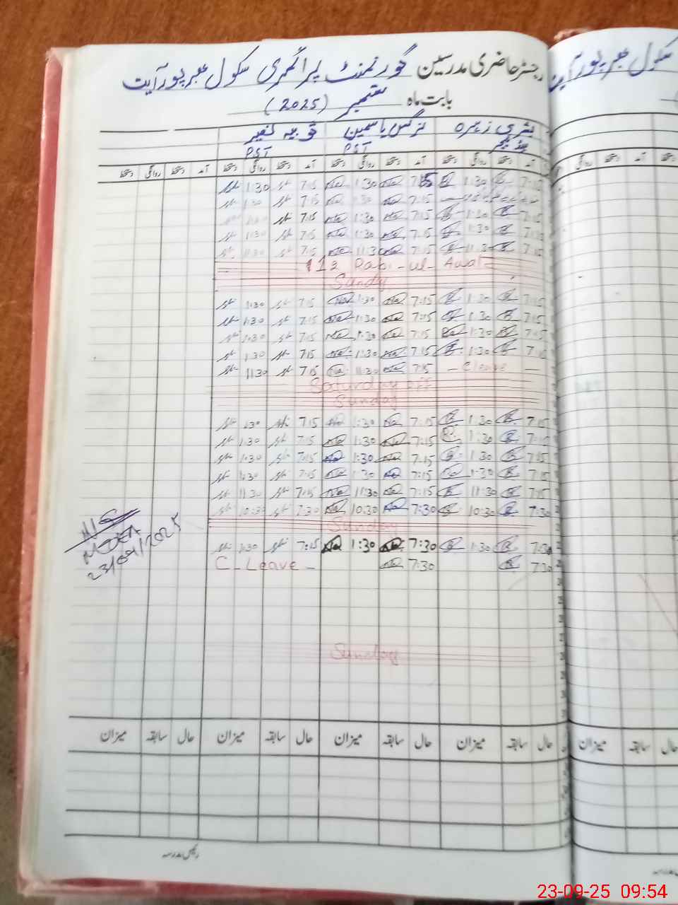 | CNIC | Full Name | Designation | R/C | Absence During Last Calender Month |