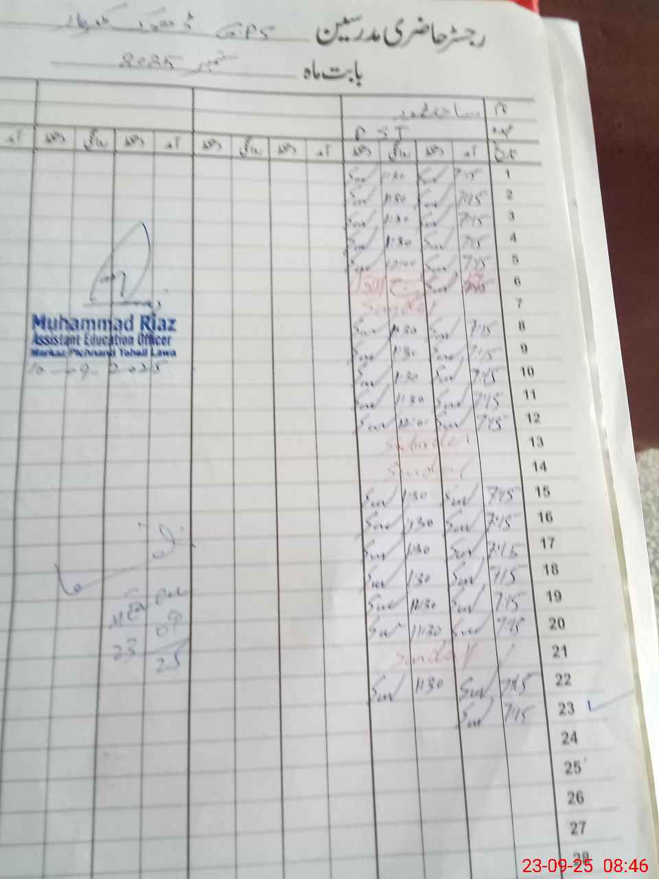 | Monitoring Date: 23-09-2025 | Start Time: 23-09-2025 08:28 AM | End Time: 23-09-2025 08:52 AM | Name of MEA: Am**** Kh**** | |