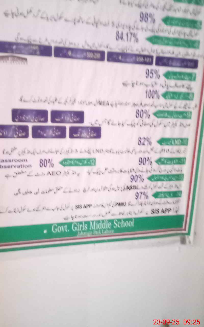 | District: LAHORE | Tehsil: MODEL TOWN | Markaz: KAMAHAN - FEMALE | Level: Middle | |