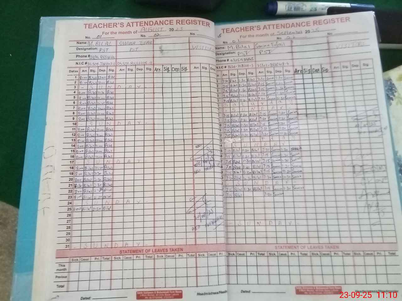 | Name: MU**** Bi**** Designation: (School Headmaster's/Headmistress's) PST Phone/Cell Number: 03**** |