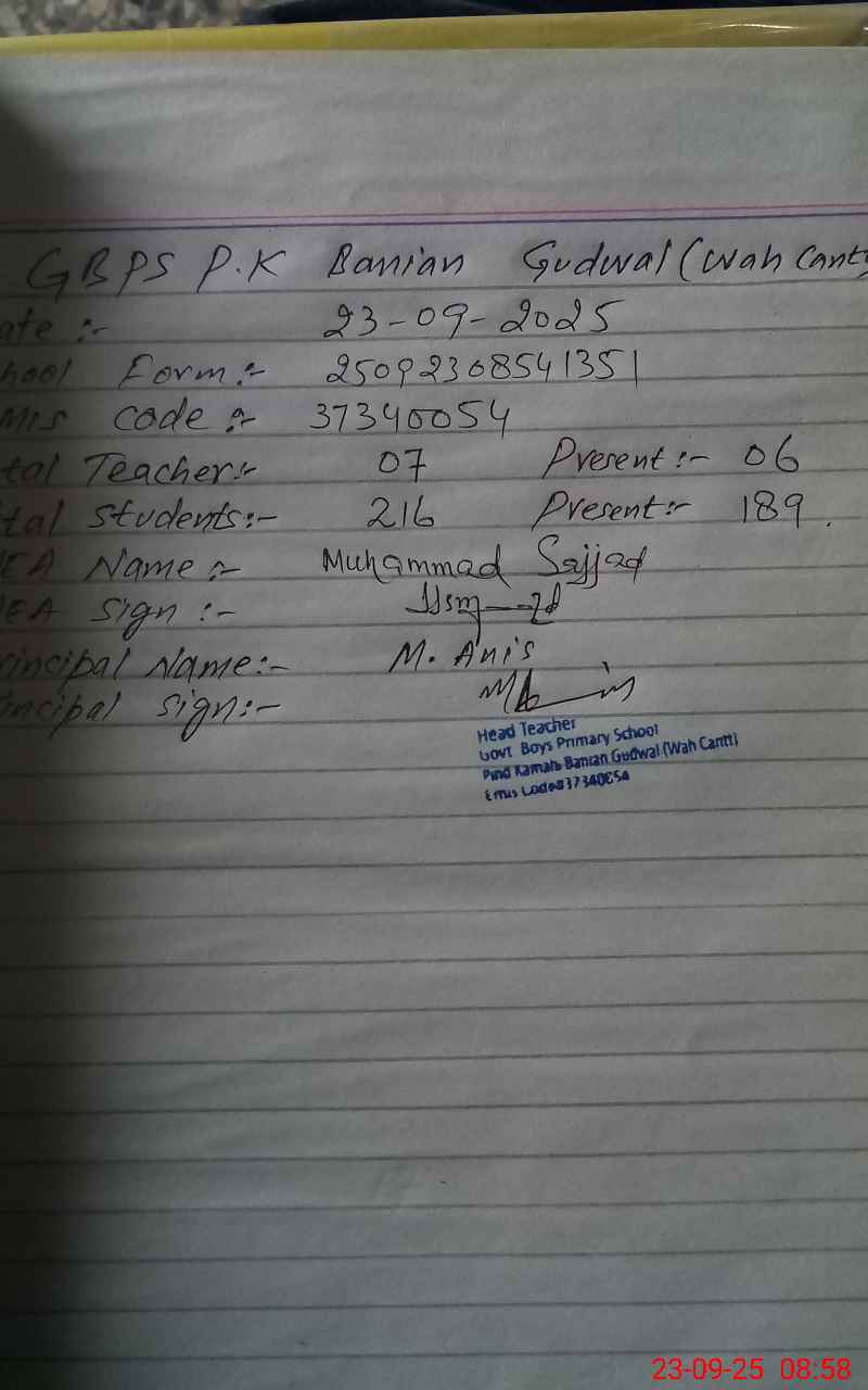 | EMIS Code: 37340054 | Name of School: GPS PIND KAMALA BANIAN | |||