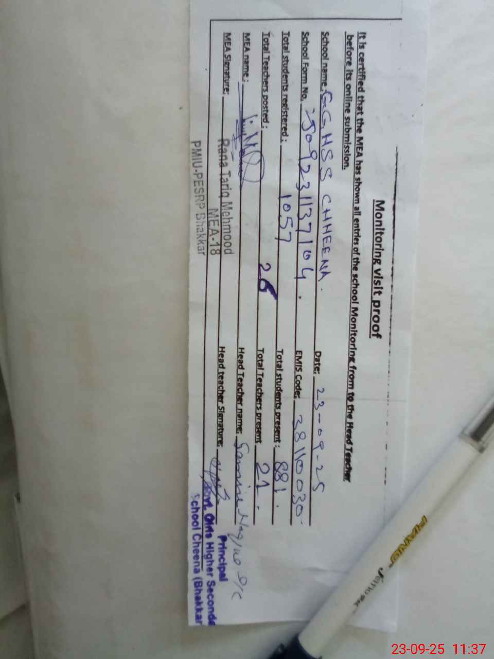 | EMIS Code: 38110030 | Name of School: GGHSS CHHINA | |||