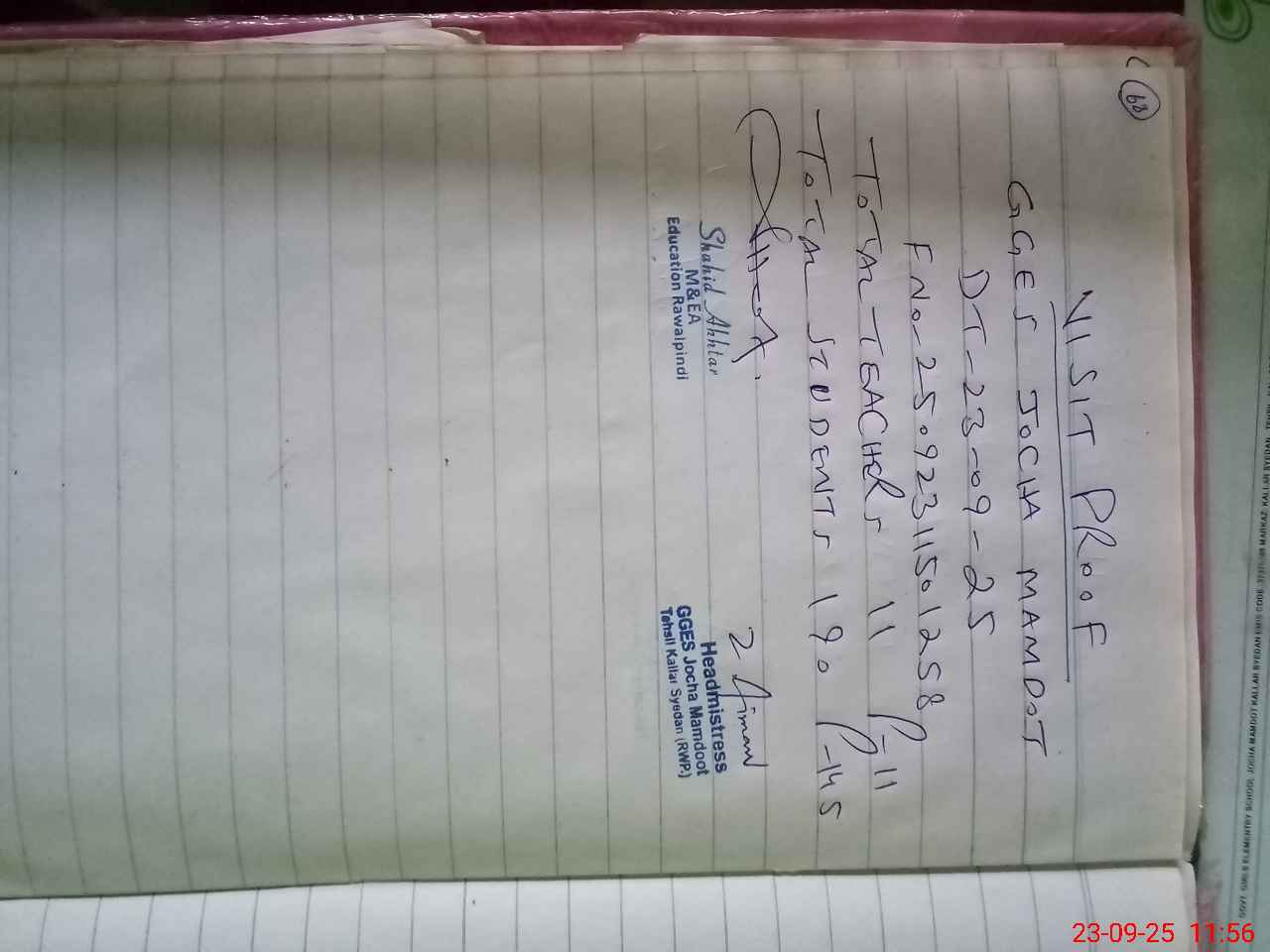 | Name: Sh**** Ej**** Designation: (School Headmaster's/Headmistress's) EST Urdu Phone/Cell Number: 03**** |