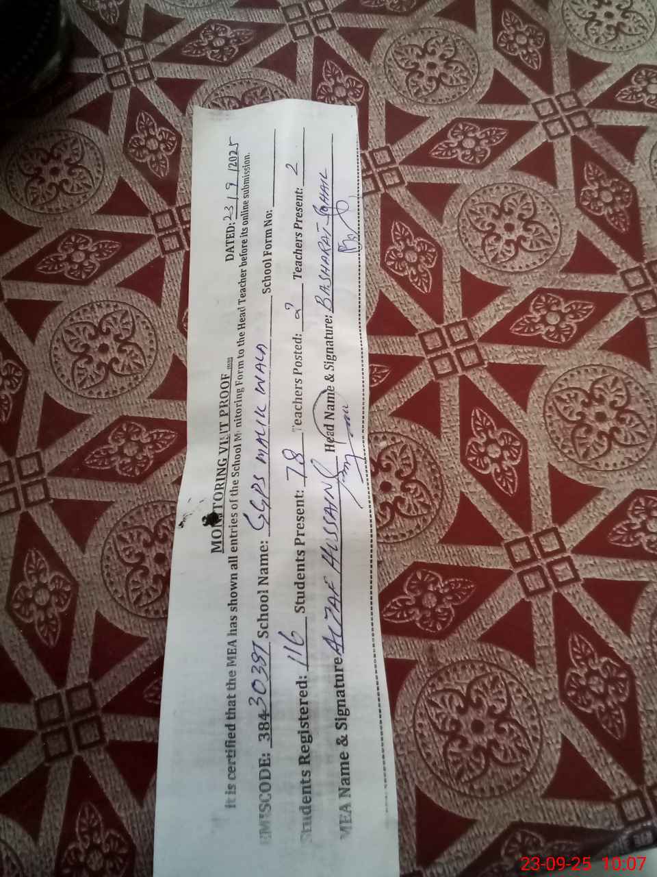 | EMIS Code: 38430381 | Name of School: GGPS MALIK WALA | |||