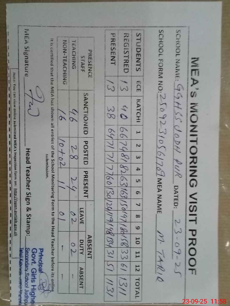 | EMIS Code: 36410034 | Name of School: GGHSS JODH PUR KABIRWALA | |||