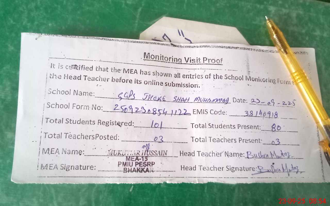 | Attendance Register | Head Teacher | MEA with School | Visit Proof |