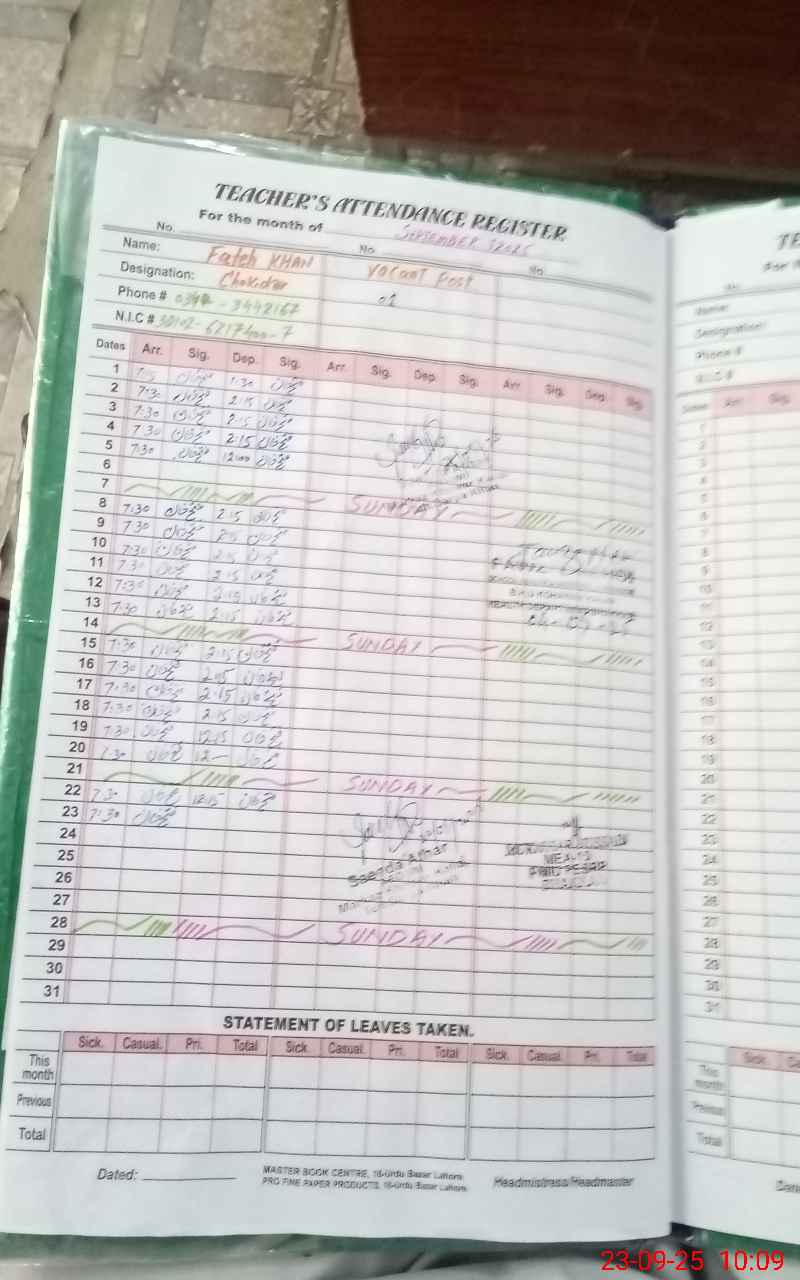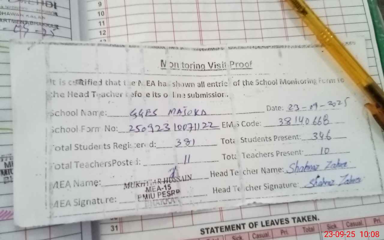 | Attendance Register | Head Teacher | MEA with School | Visit Proof |