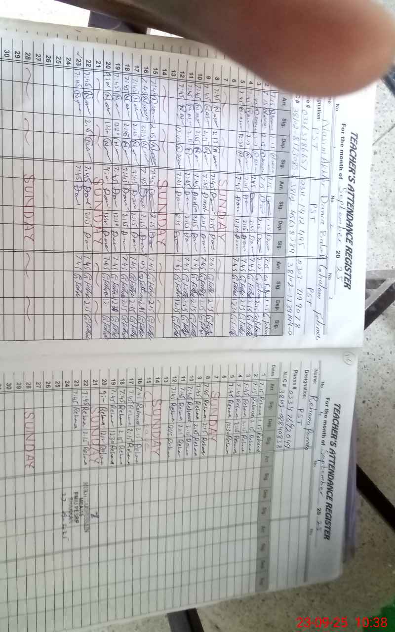 | CNIC | Full Name | Designation | R/C | Absence During Last Calender Month |