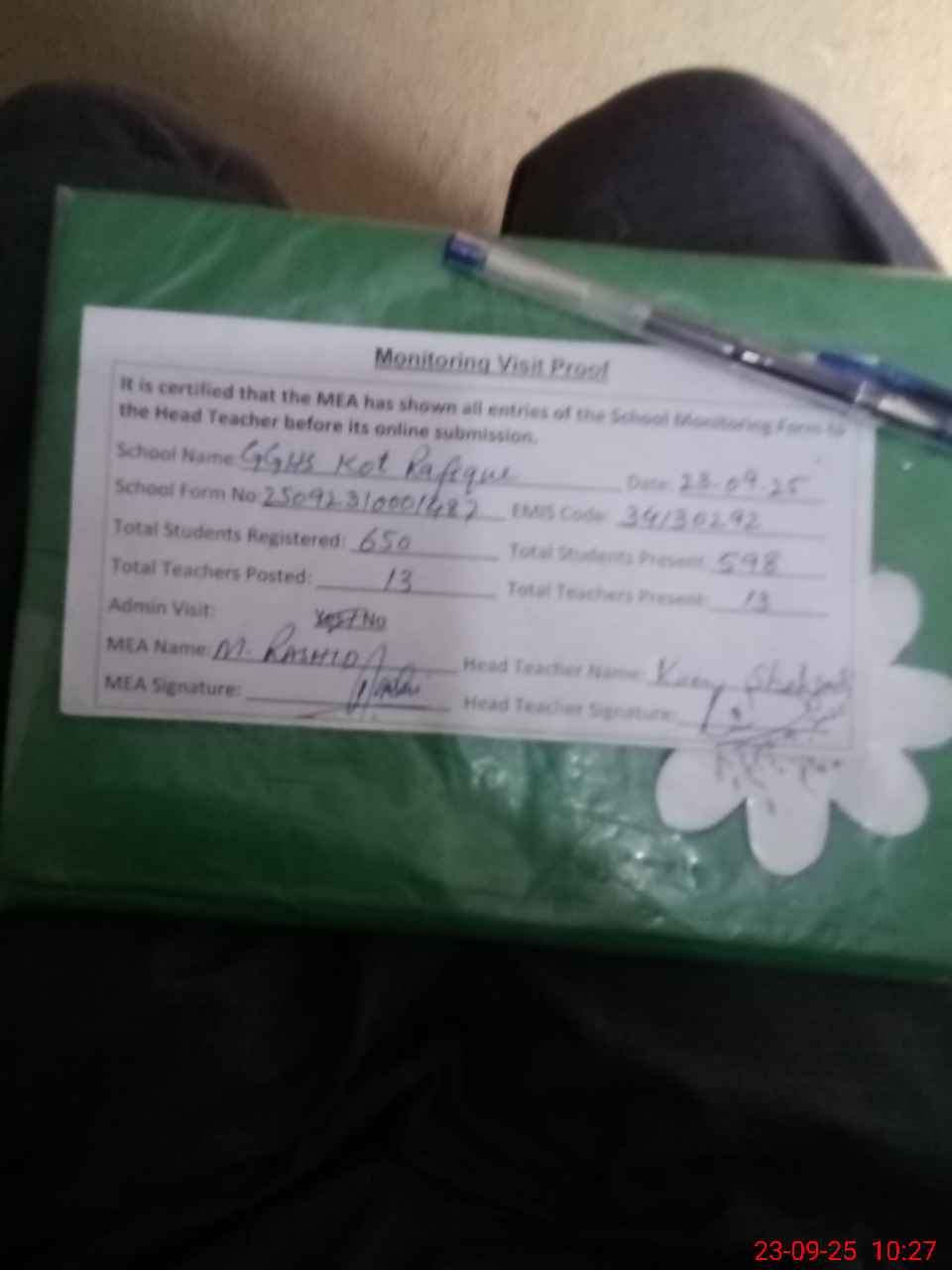 | EMIS Code: 34130292 | Name of School: GGHS KOT RAFIQ | |||