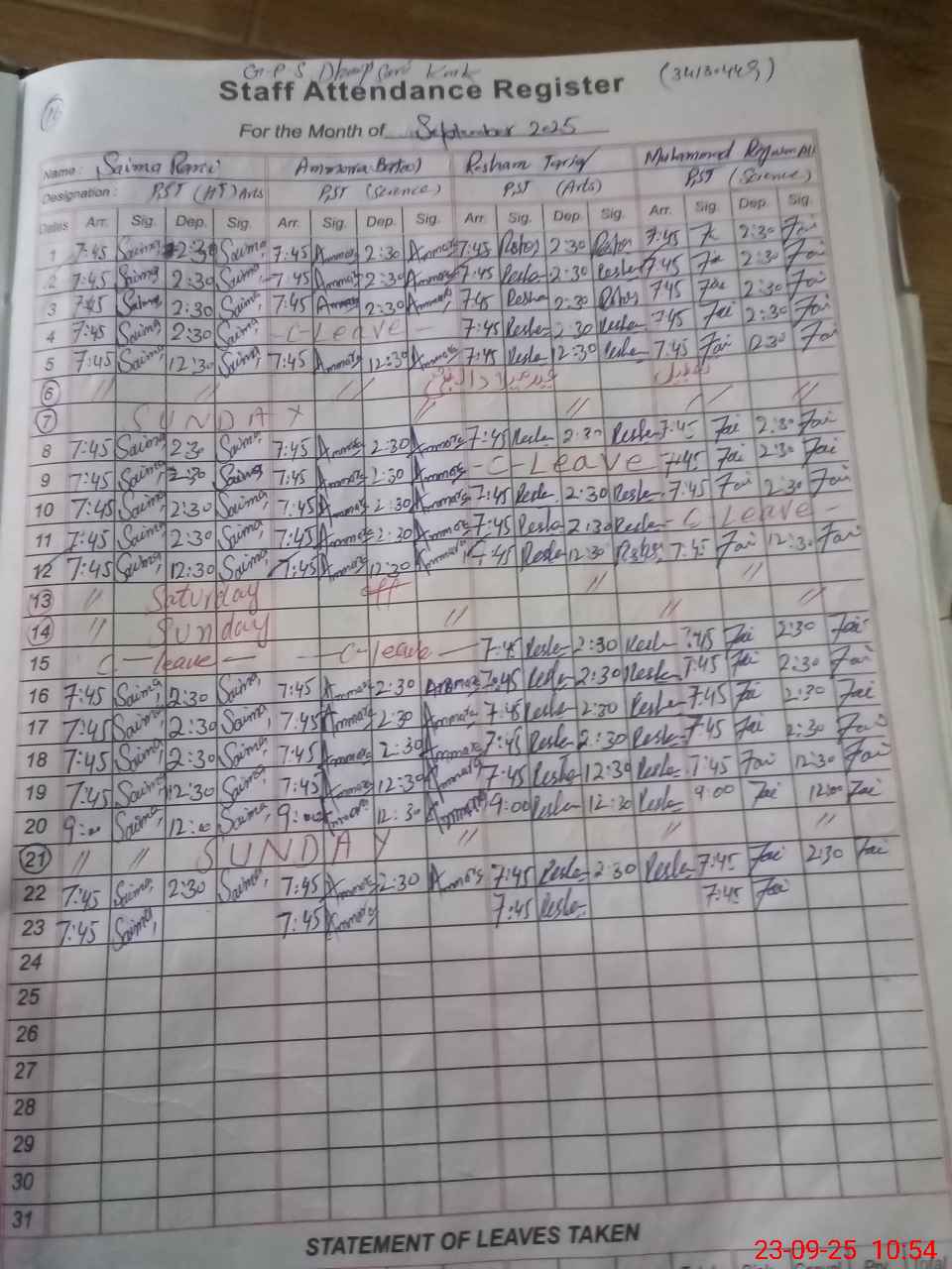| 34**** | Us**** As**** Kh**** | ESE | Contract | 0 | 0 | 0 | 0 | 0 | 0 | 0 | 0 | 0 | Absent (Un-Authorized) |