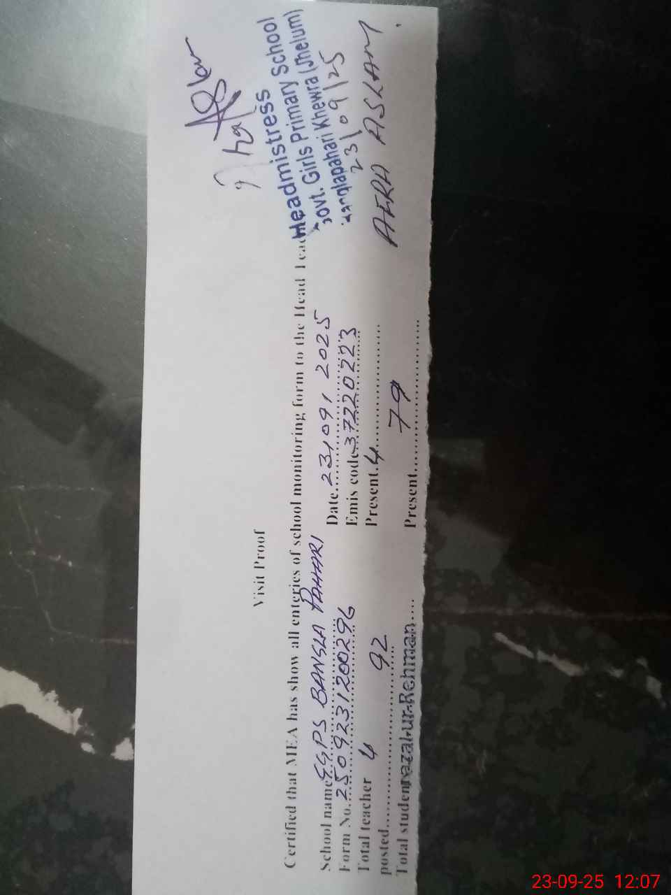 | EMIS Code: 37220223 | Name of School: GGPS BANGLA PAHARI KHEWRA | |||