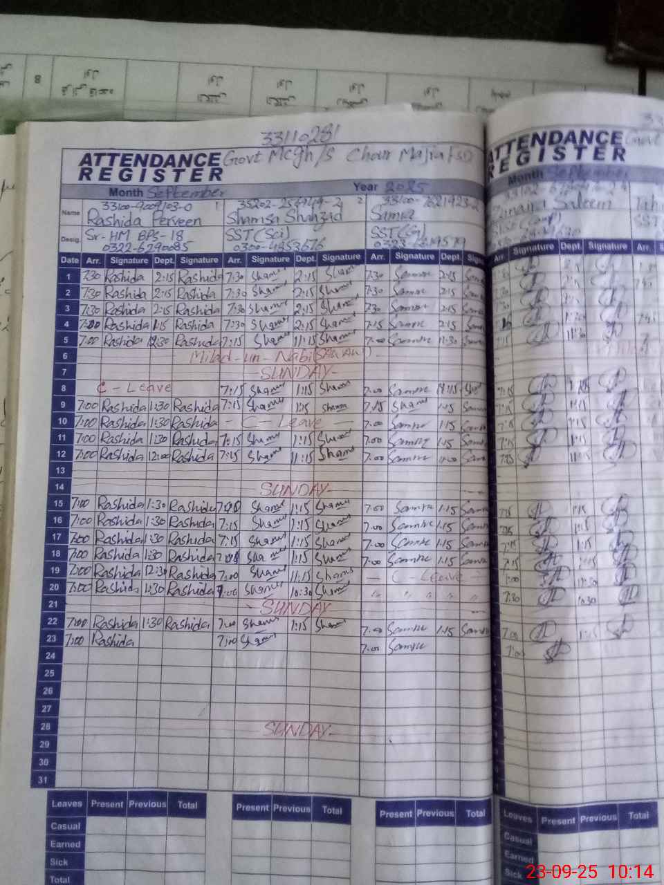 | 33**** | Za**** Na**** | CHOUKIDAR | Regular | 2 | 0 | 0 | 0 | 0 | 0 | 0 | 0 | 2 | Casual |