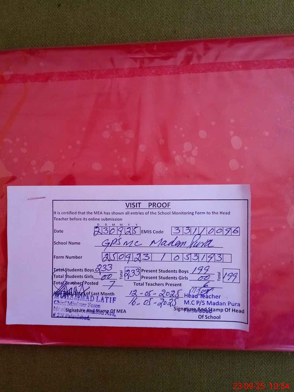 | EMIS Code: 33110096 | Name of School: GPS MC MADANPUR FAISALABAD | |||