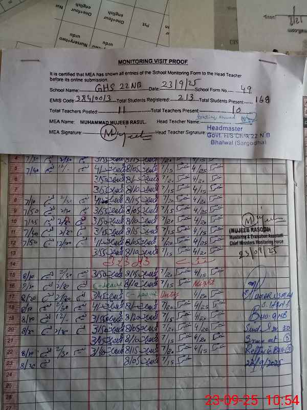| EMIS Code: 38410013 | Name of School: GHS CHAK NO.22 NB | |||
