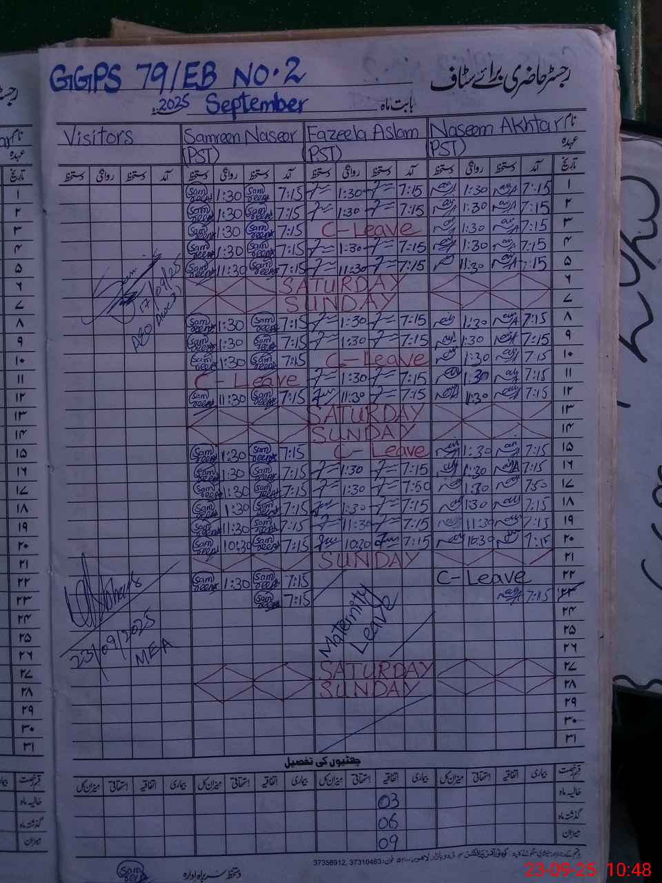 | 36**** | Fa**** Aa**** | PST | Regular | 0 | 0 | 0 | 0 | 0 | 0 | 0 | 0 | 0 | Maternity |