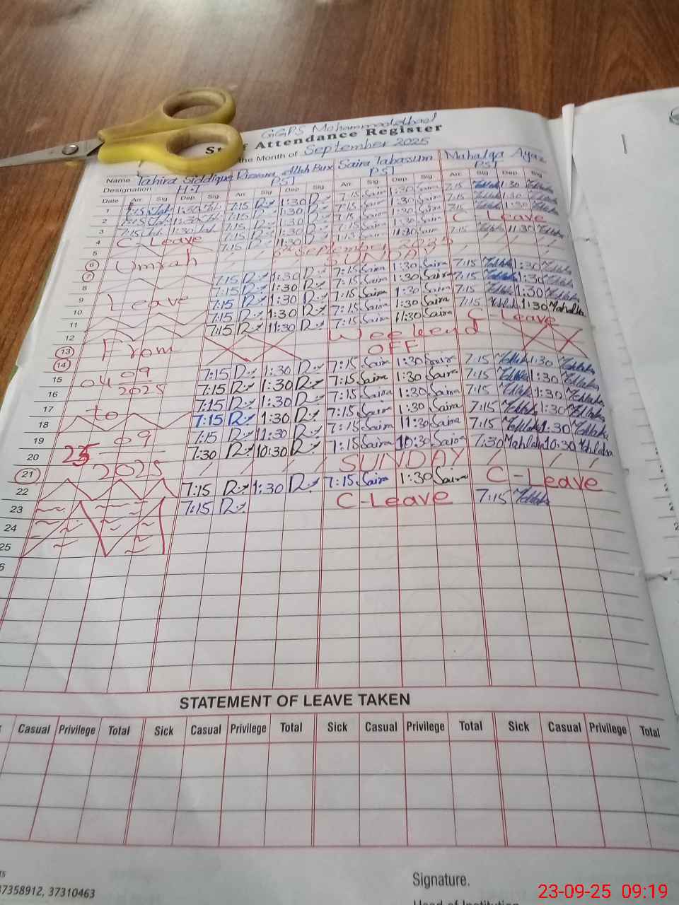 | Name: Ta**** Si**** Designation: (School Headmaster's/Headmistress's) PST Phone/Cell Number: 03**** |