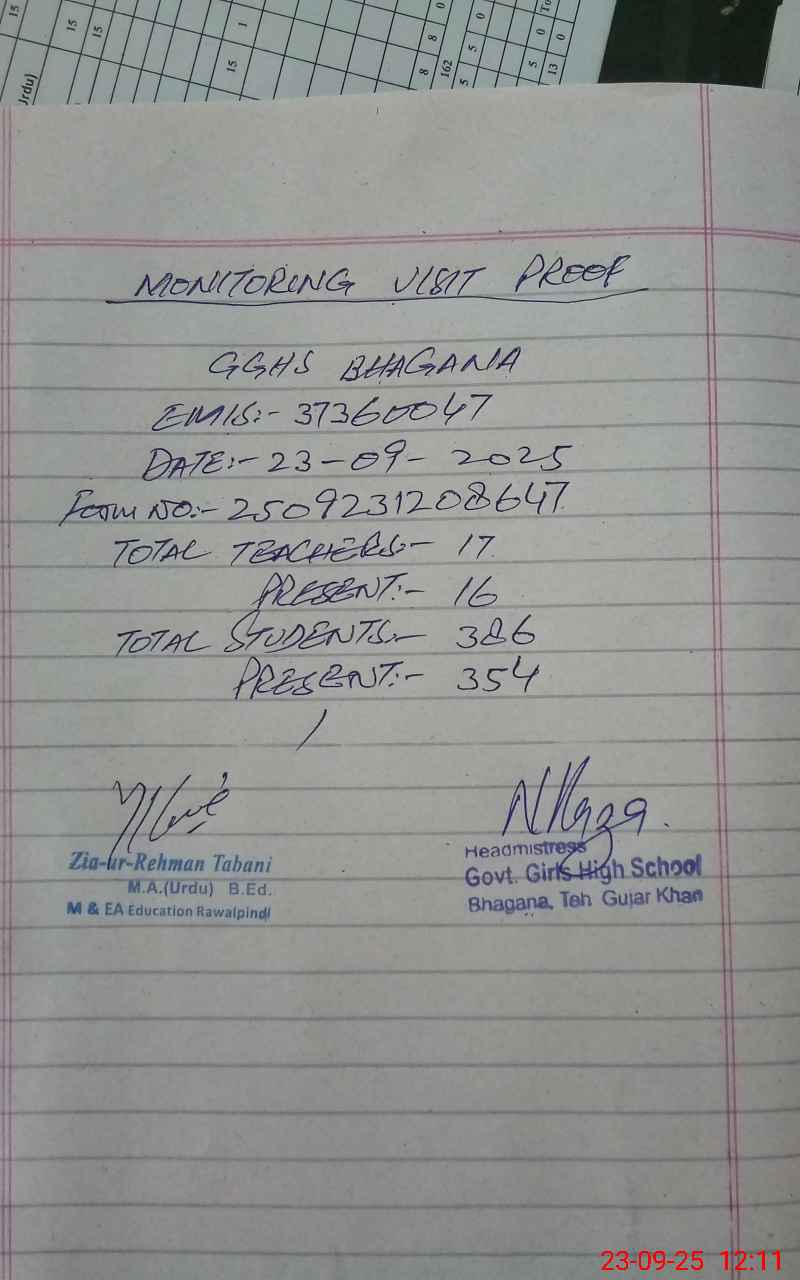 | EMIS Code: 37360047 | Name of School: GGHS BHAGANA | |||
