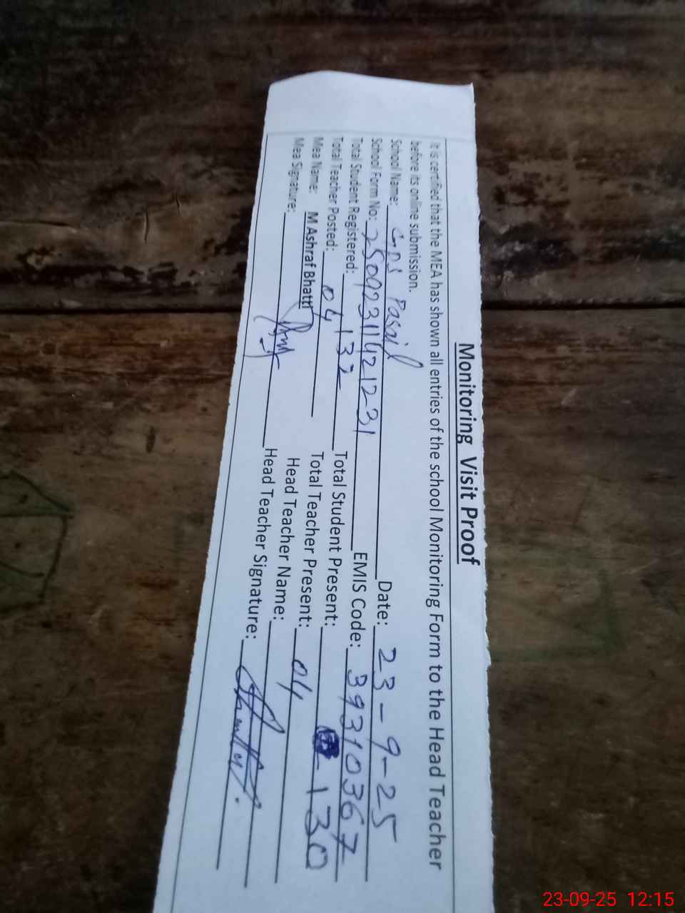 | EMIS Code: 39310367 | Name of School: GPS PASAIL | |||
