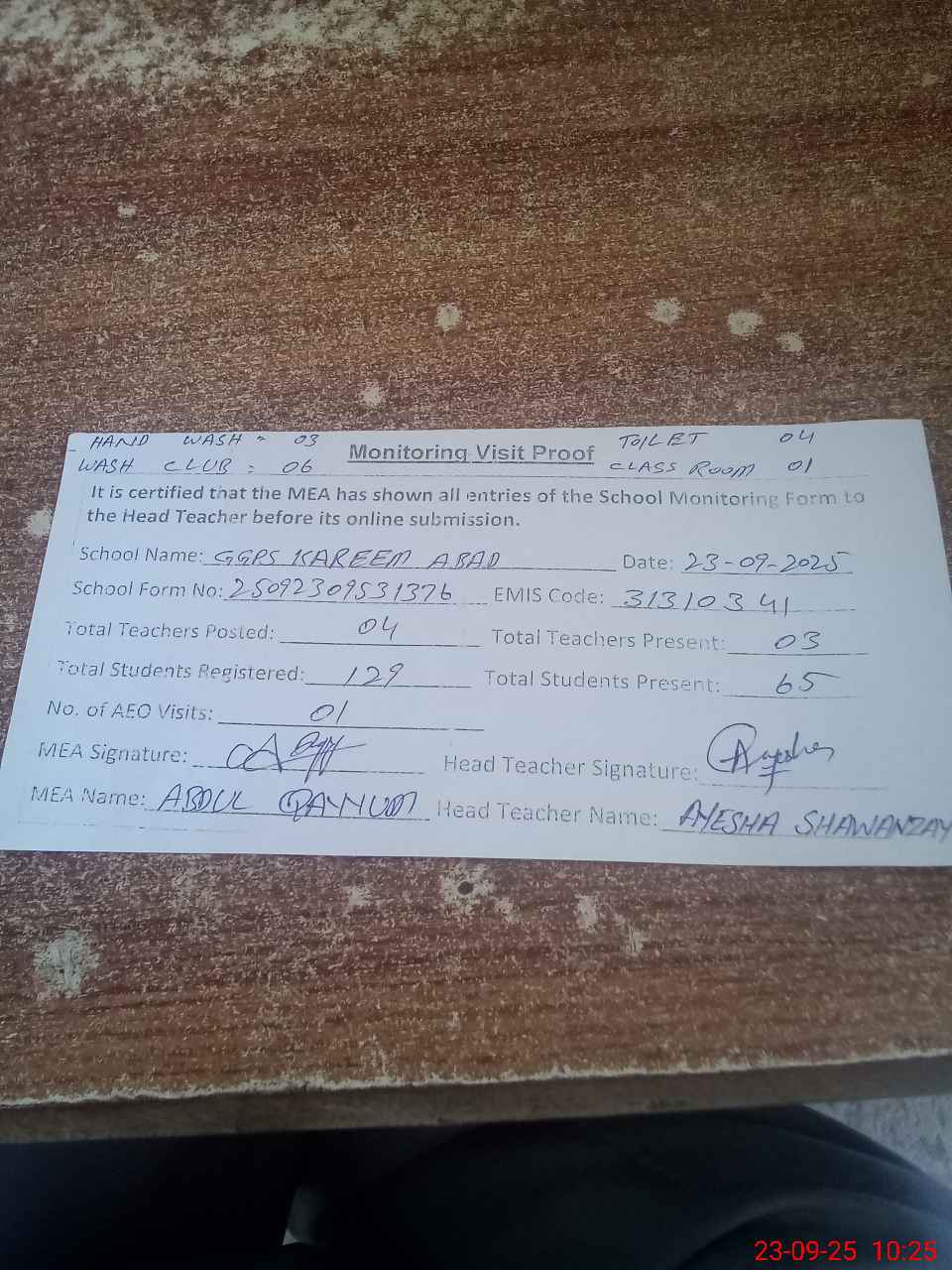 | EMIS Code: 31310341 | Name of School: GGPS KARIM ABAD | |||