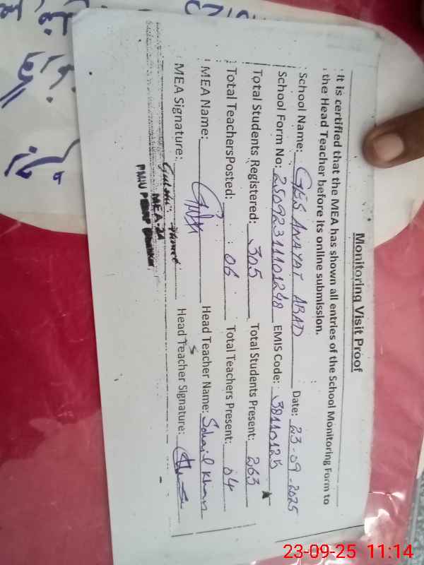 | EMIS Code: 38110125 | Name of School: GES ANAYAT ABAD | |||