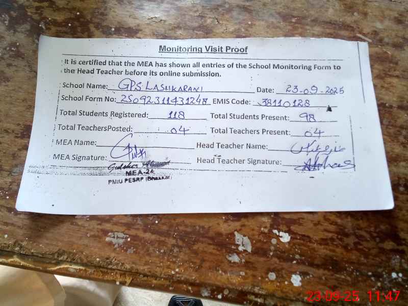 | EMIS Code: 38110128 | Name of School: GPS LASHKARANI | |||