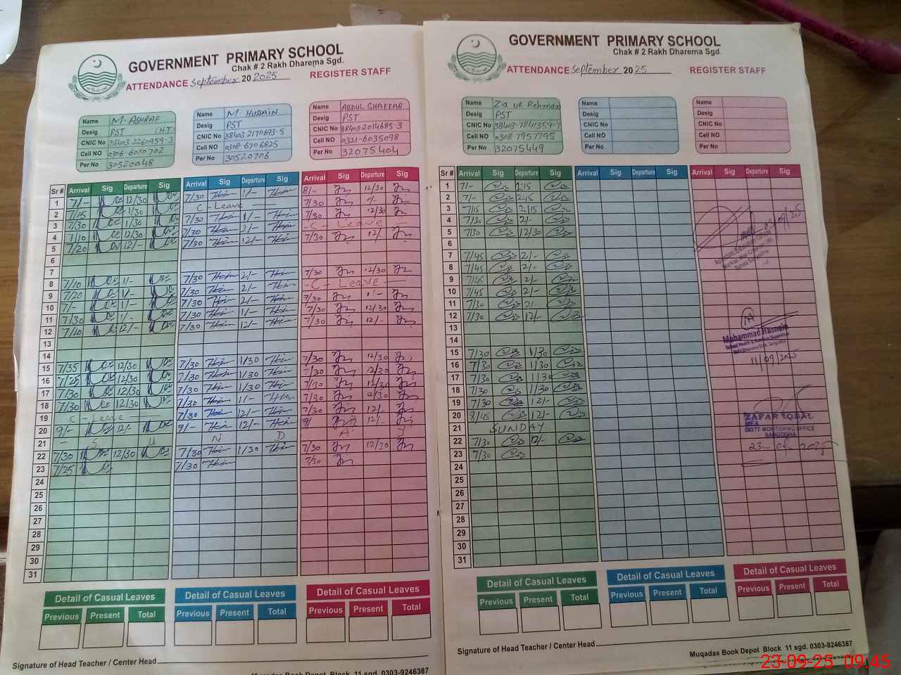 | CNIC | Full Name | Designation | R/C | Absence during last cal. month |