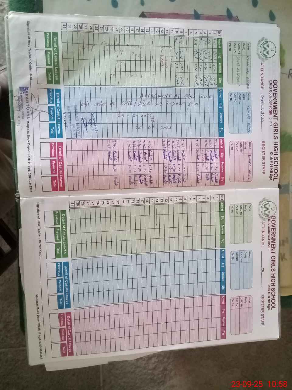 | Name: SA**** SH**** Designation: (School Headmaster's/Headmistress's) SST I/C HEADMISTRESS Phone/Cell Number: 03**** |