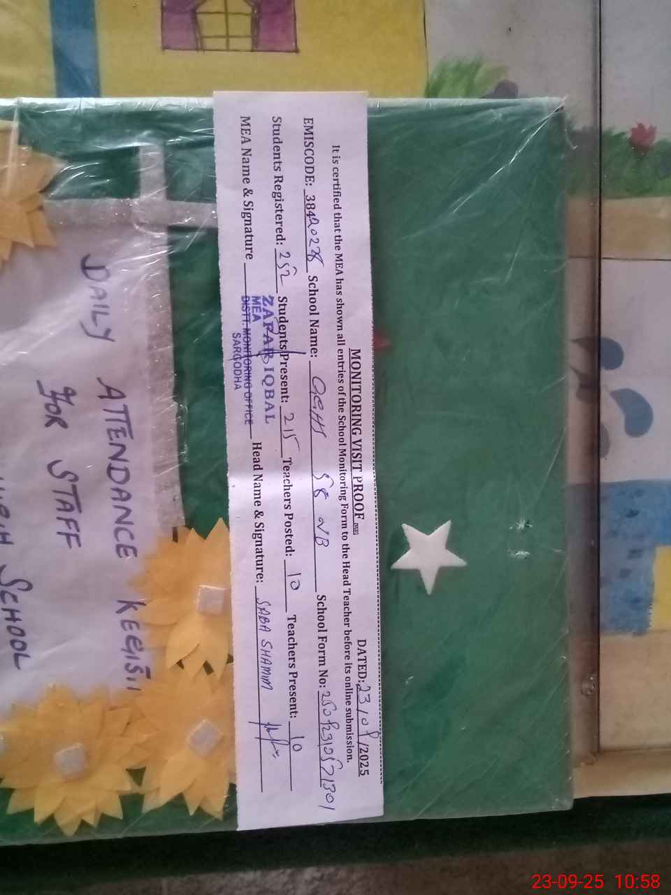 | EMIS Code: 38420228 | Name of School: GGHS CHAK NO.58 NB | |||