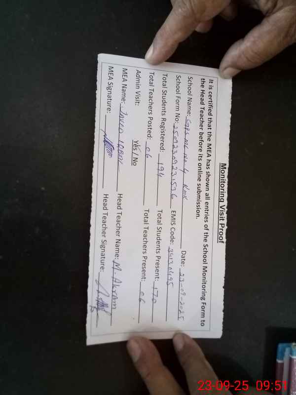 | EMIS Code: 34130495 | Name of School: GPS MC NO.04 KAMOKE | |||