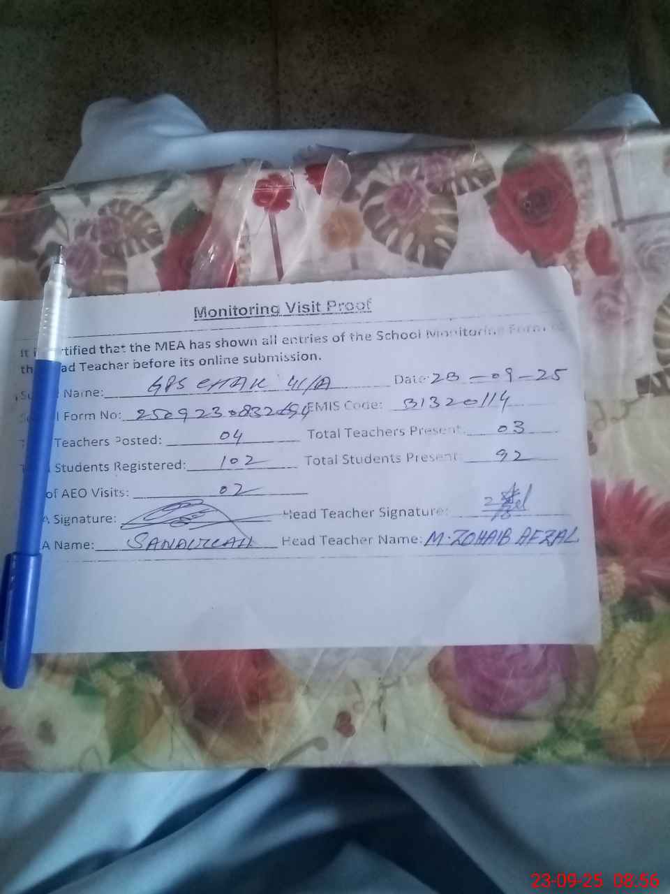 | EMIS Code: 31320114 | Name of School: GPS CHAK 41/A | |||