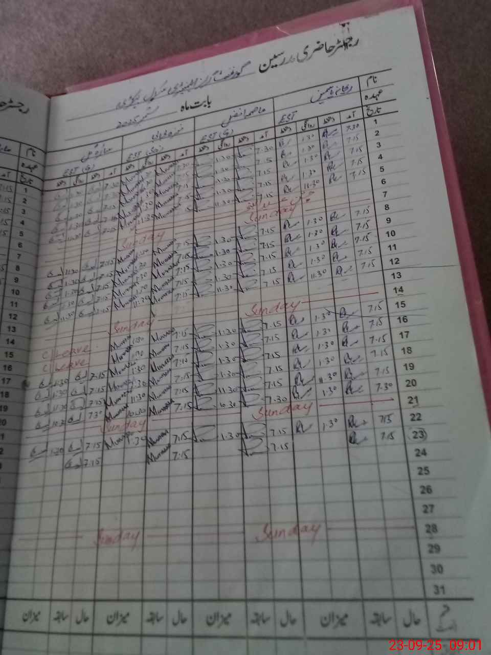 | CNIC | Full Name | Designation | R/C | Absence During Last Calender Month |