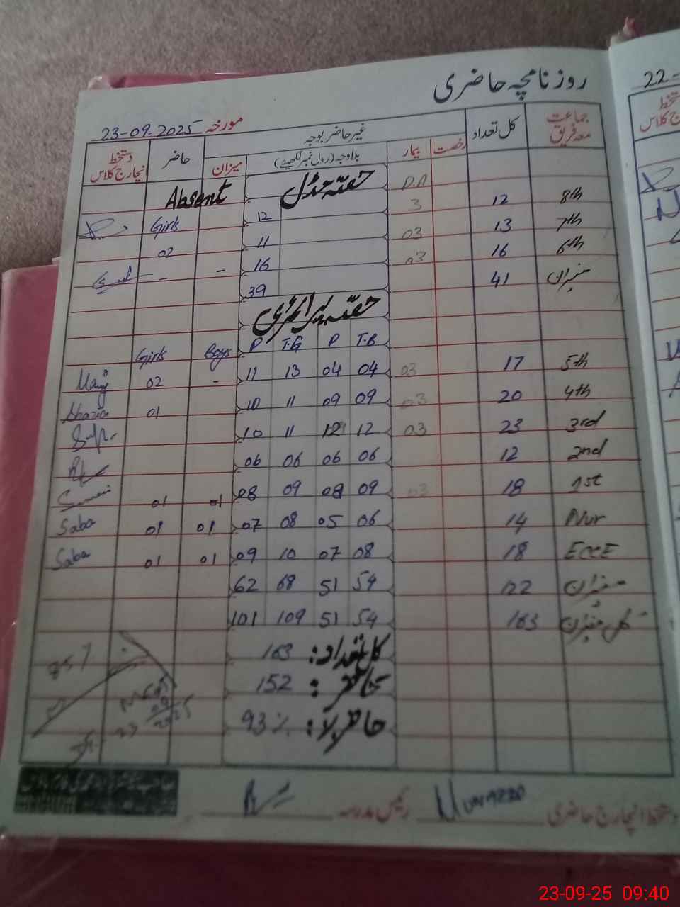| No. of Students Present - Female | 10 | 0 | 7 | 5 | 6 | 10 | 9 | 10 | 16 | 9 | 12 | 94 | ||||