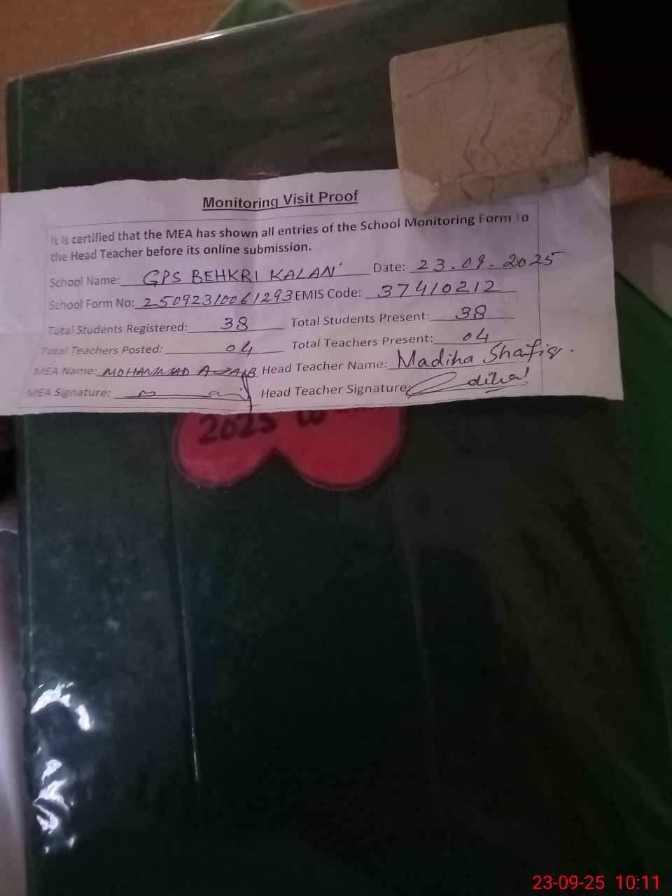 | EMIS Code: 37410212 | Name of School: GPS BEHKRI KALAN | |||